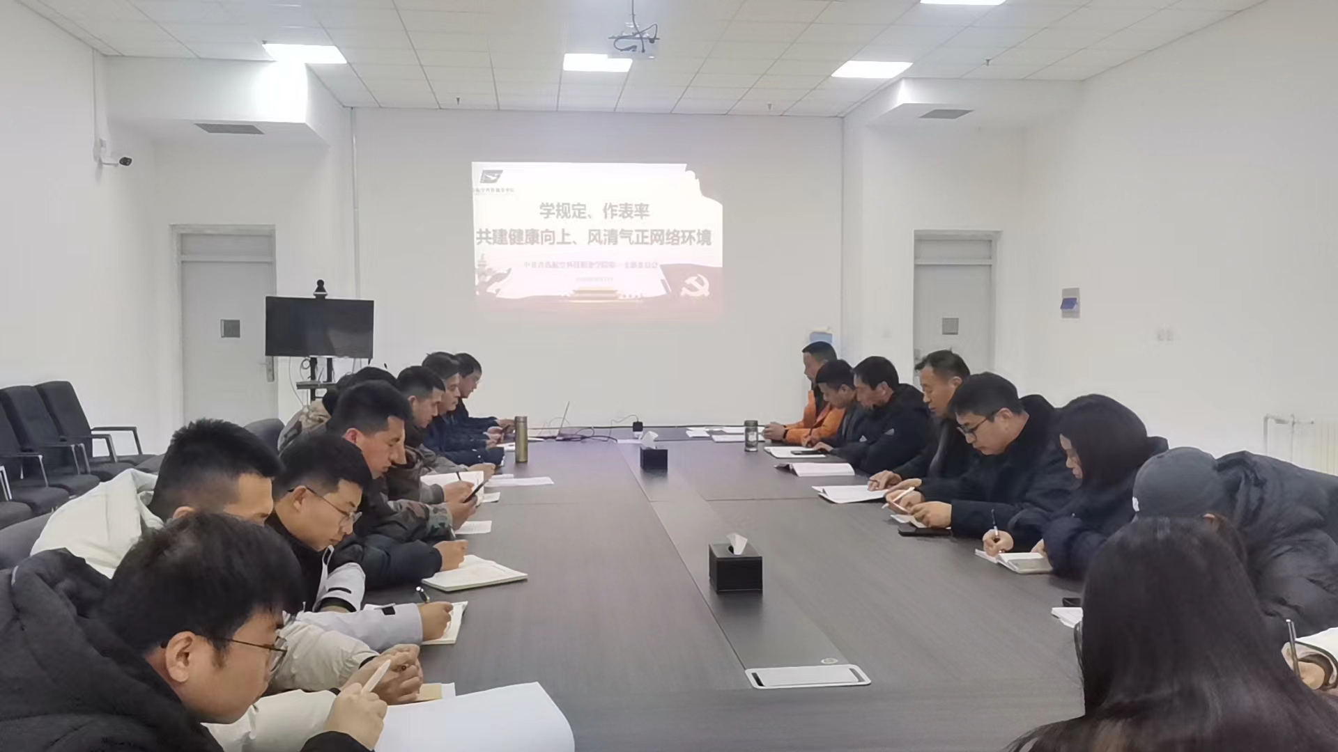 青岛航空科技职业学院第一党支部开展“学规定、作表率,共建健康向上、风清气正网络环境”主题党日并进行2023年度民主评议党员