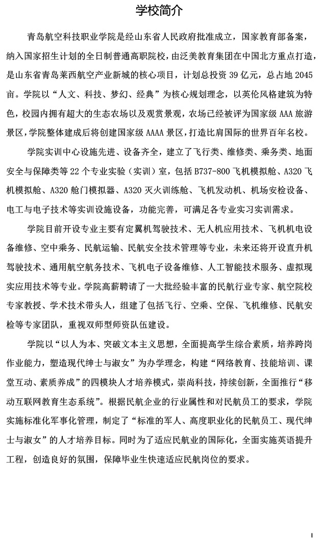 青岛航空科技职业学院 2024 年高职(专科)单独考试招生章程