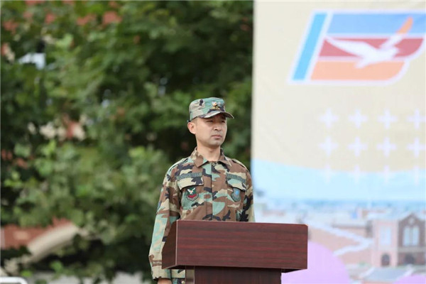 2021级航空信息专业新生李晨代表全体同学发言:军事及职业素养训练是进行青航的必修课,我们全体新生在参训过程中,坚决服从命令听从指挥,严肃认真,高标准高质量的完成训练中的各项任务,预祝同学们在训练过程中过的愉快充实。