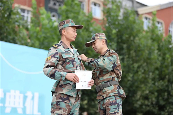 青岛航空科技职业学院2021级新生军训总教官刘克刚先生任命严天钰担任青岛航空科技职业学院2021级新生军训主训教官,随后严天钰任命指导教官、实习教官并授予臂章。