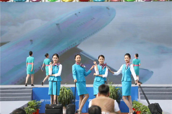 在揭牌仪式现场,青岛北方航空职业学校的学子们带来精彩的航空专业特色节目表演,爵士舞《FLY嗨!》、校园学生服饰展示《多彩青航》、创意说唱《乐享·云端》、航空手语操《爱在蓝天》、飞行T台秀《壮志凌云》。现场其乐融融,赞叹声不绝于耳。