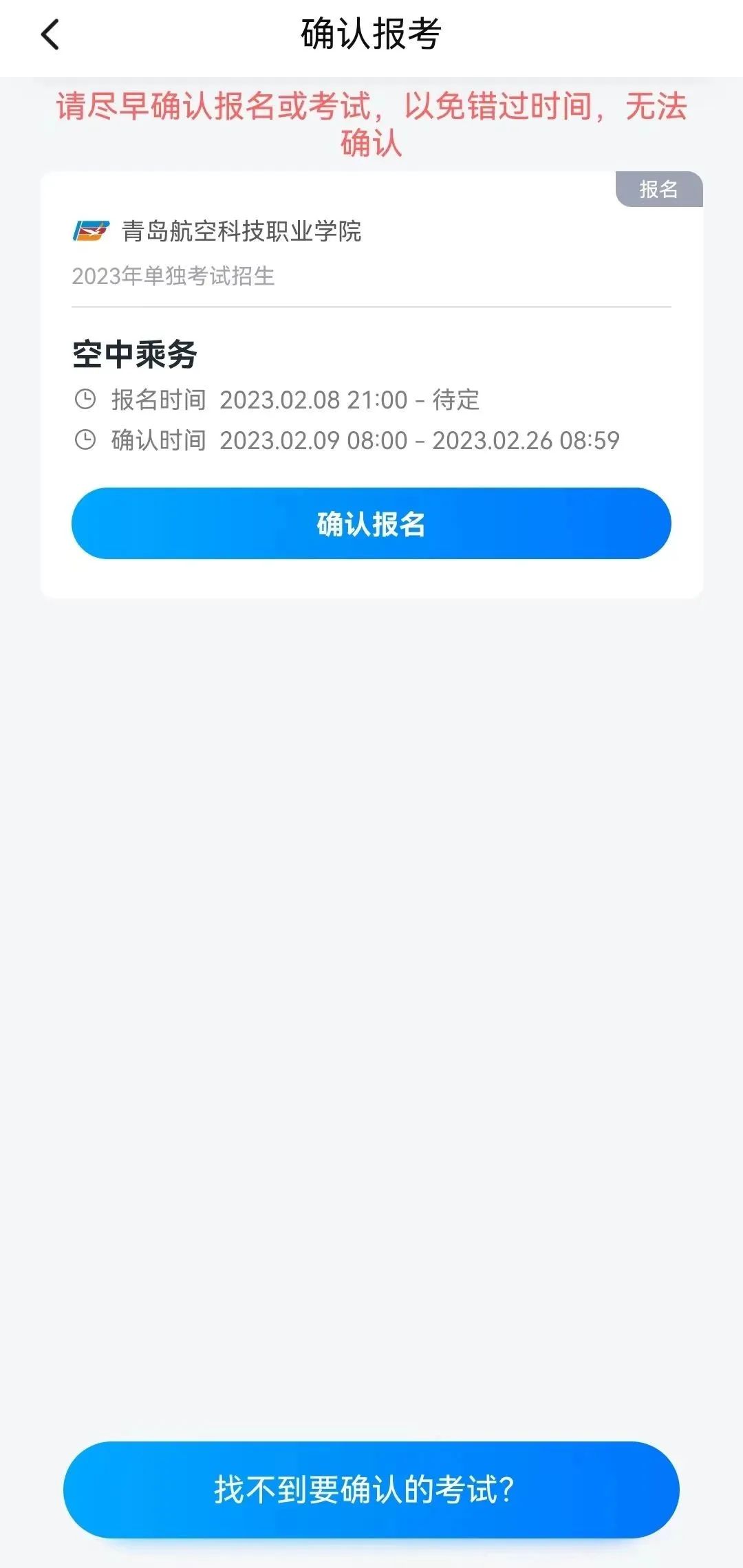 如果没有找到需要确认的考试记录,请联系学校核对导入名单是否正确,学校联系方式:0532-83418666