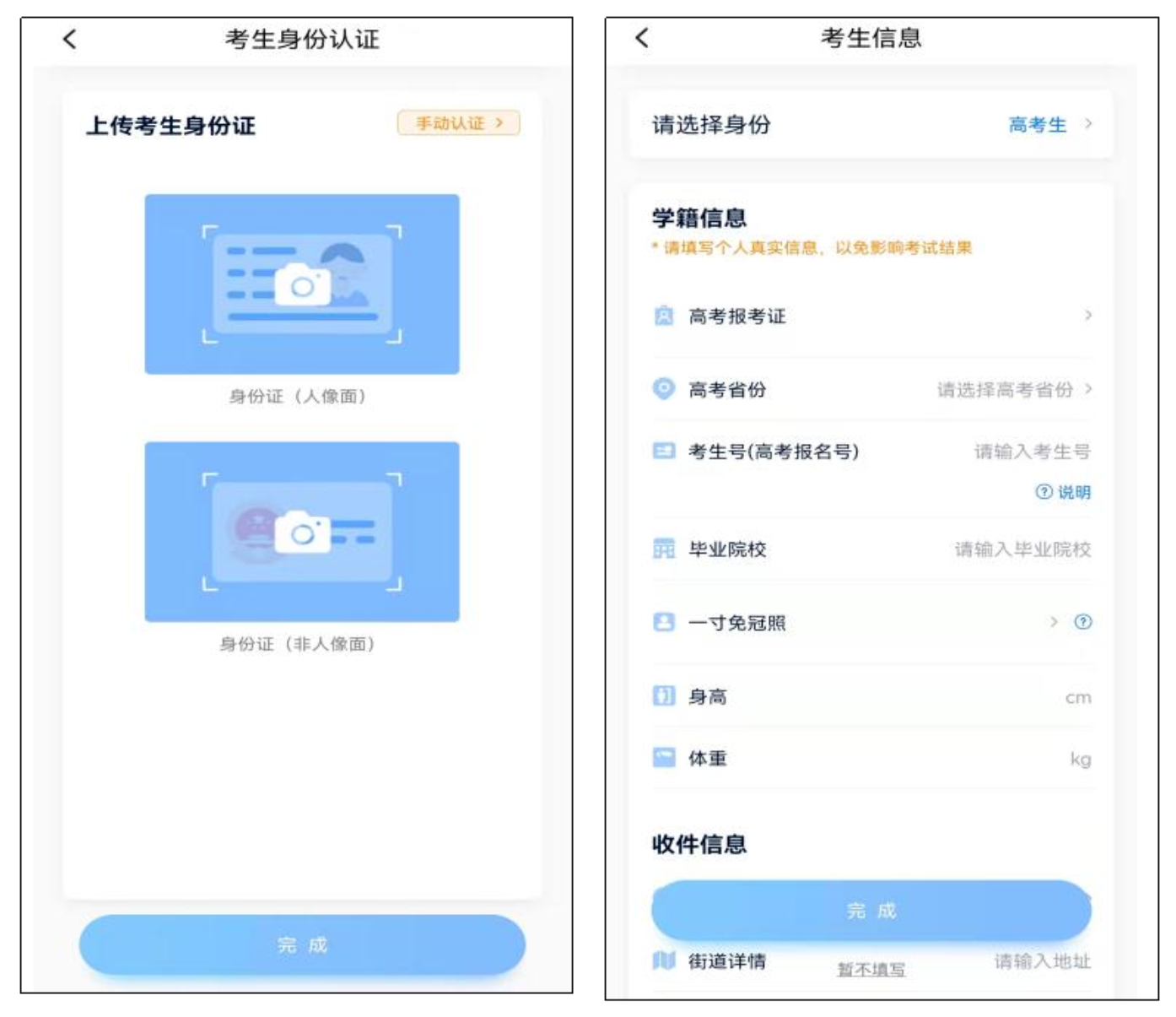 身份认证及填写考生信息