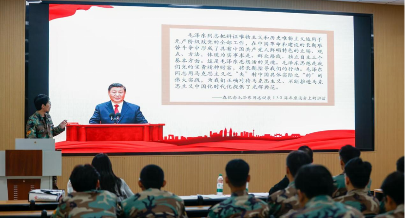 秦童童老师以“毛泽东思想的科学体系与时代价值”为题,系统梳理了毛泽东思想形成发展的历史脉络、核心要义及其对中国革命和建设的根本指导作用。他围绕新民主主义革命理论、社会主义革命和建设理论以及党的建设理论等重点内容,阐释了毛泽东思想“实事求是、群众路线、独立自主”的活的灵魂。通过回顾中国共产党领导人民进行艰苦卓绝斗争的光辉历程,他引导师生深刻理解毛泽东思想作为马克思主义中国化第一次历史性飞跃的理论成果,是如何指引中国人民站起来、确立社会主义基本制度的。讲座史料翔实、分析透彻,帮助在场师生对这一马克思主义中国化的开创性理论成果有了更全面、更深刻的认识。