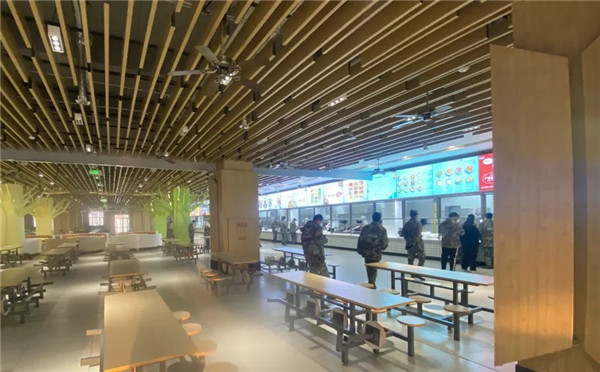 为全力保障错峰就餐、文明就餐,食堂严格对入口进行限制,并在规定入口设有体温检测点以及免洗消毒洗手液。同学们佩戴好口罩,按照指定路线到食堂就餐,进入食堂前,有序排队,间隔1.5米以上,依次接受体温检测,并自行洗手消毒。