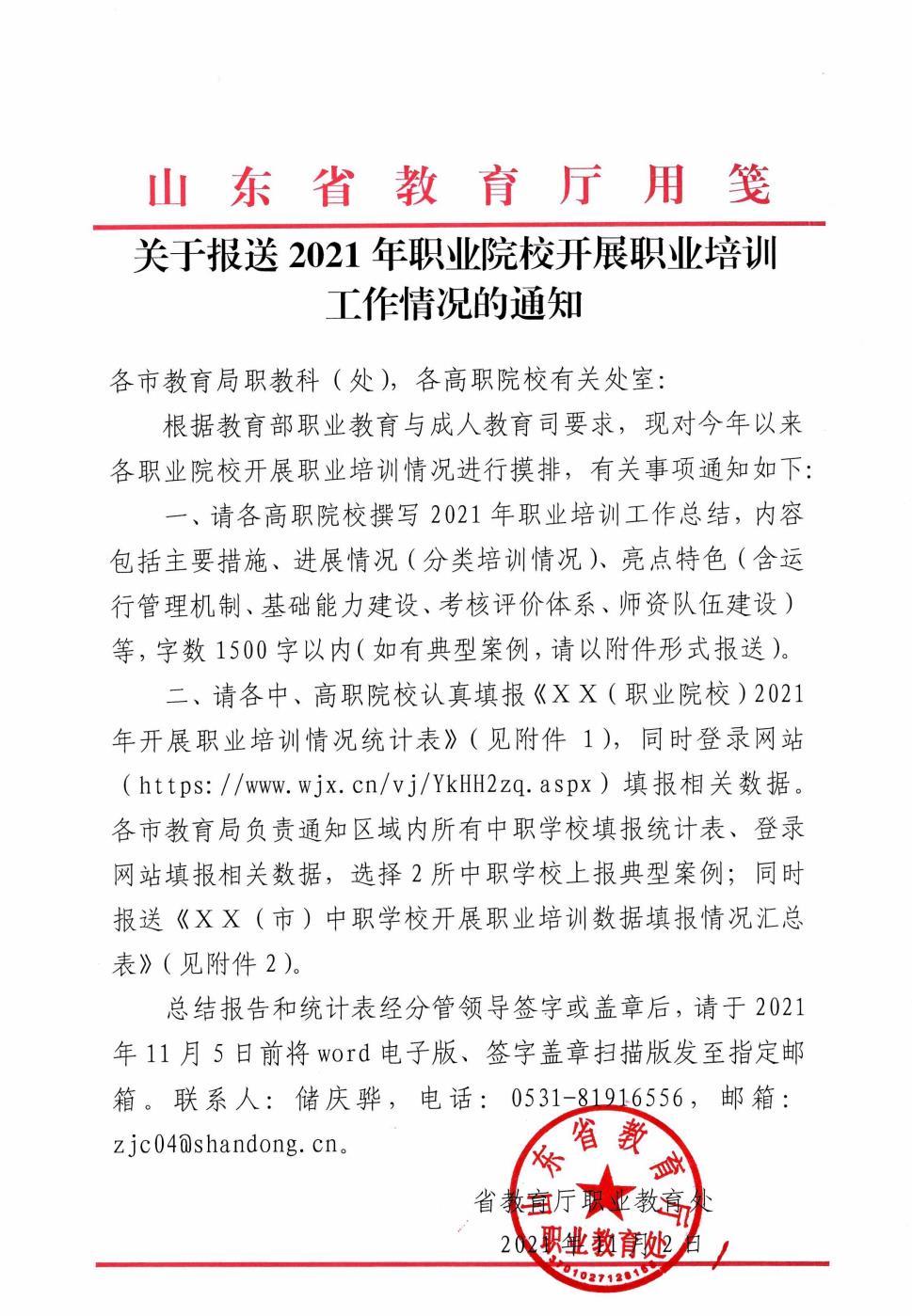 关于报送2021年职业院校开展职业培训工作情况的通知