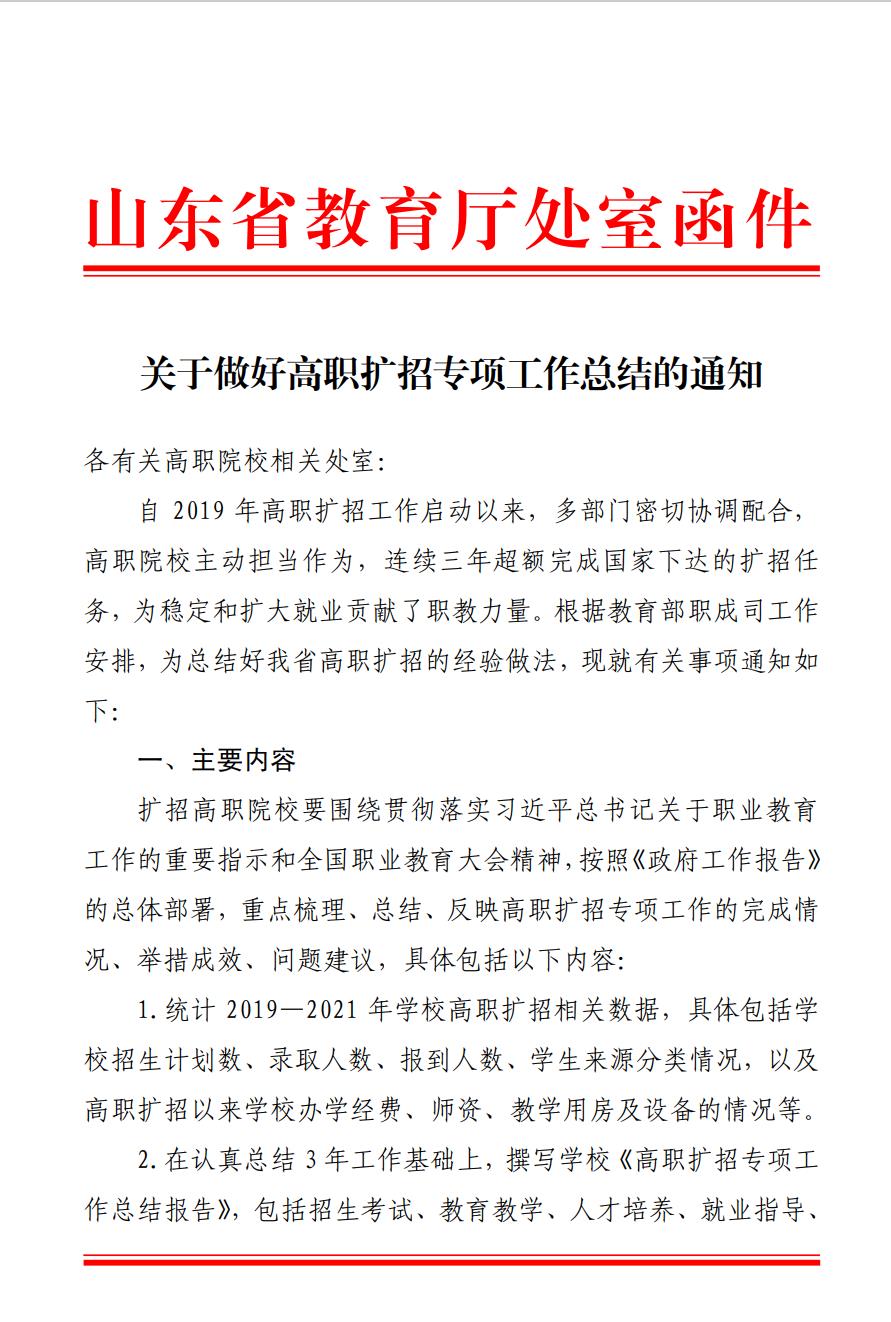 关于做好高职扩招专项工作总结的通知.pdf