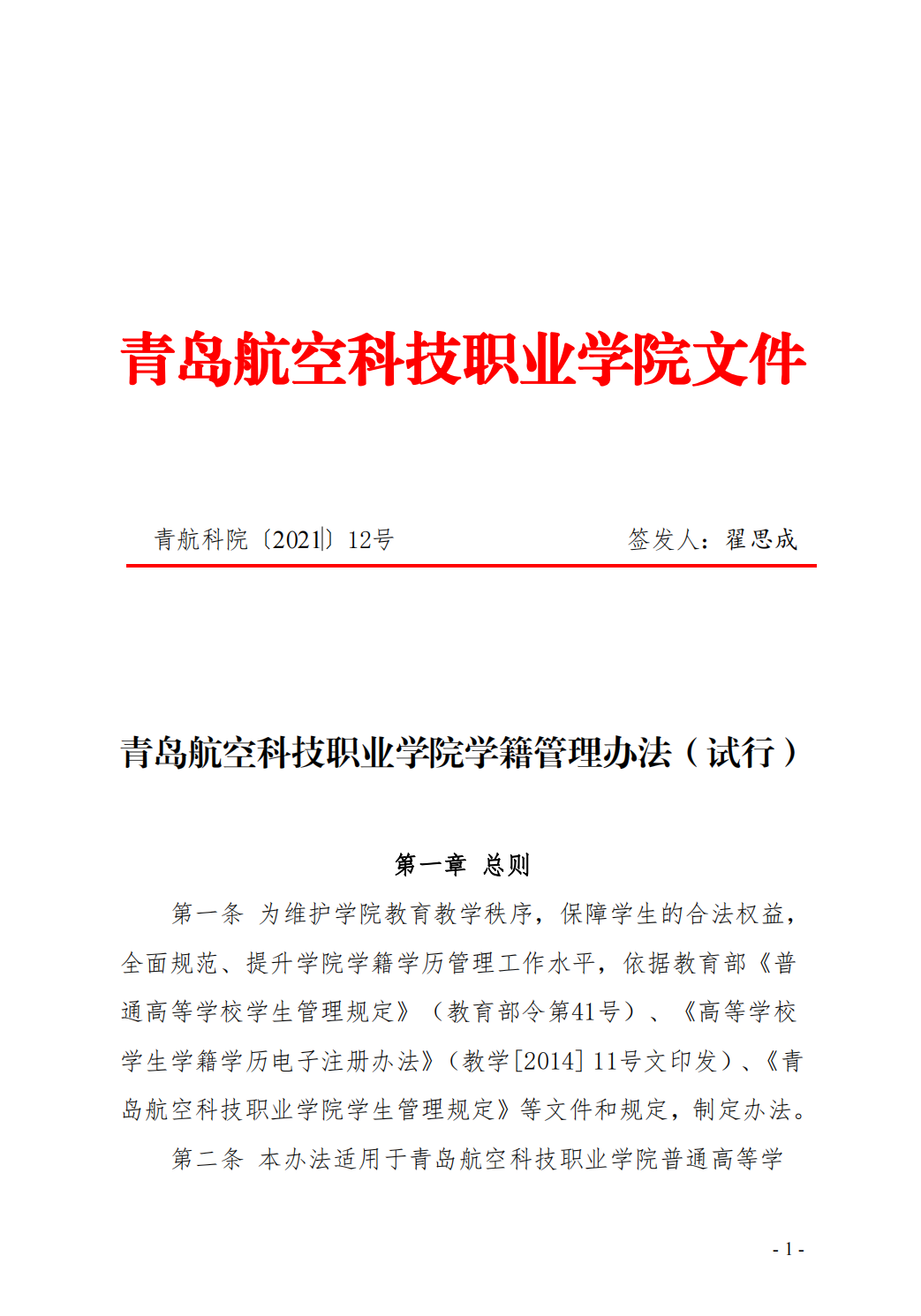 青岛航空科技职业学院学籍管理办法(试行).pdf