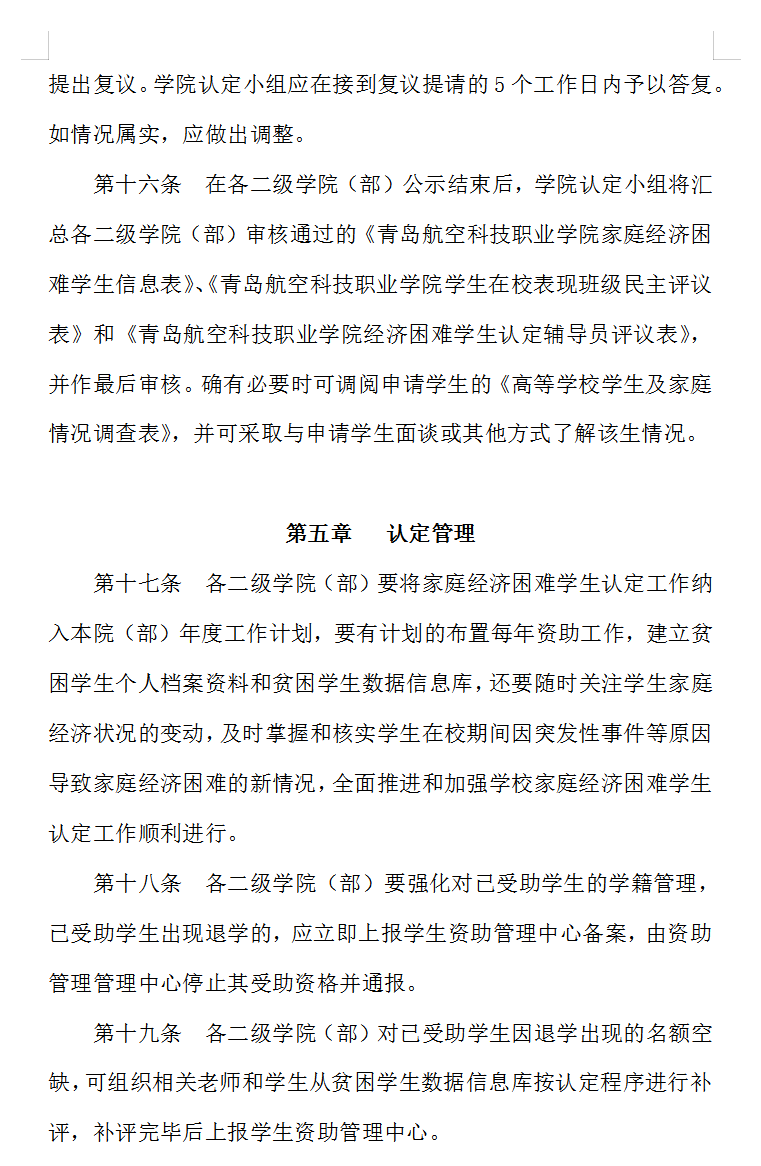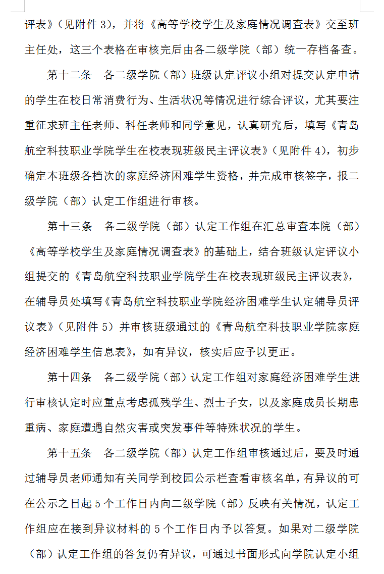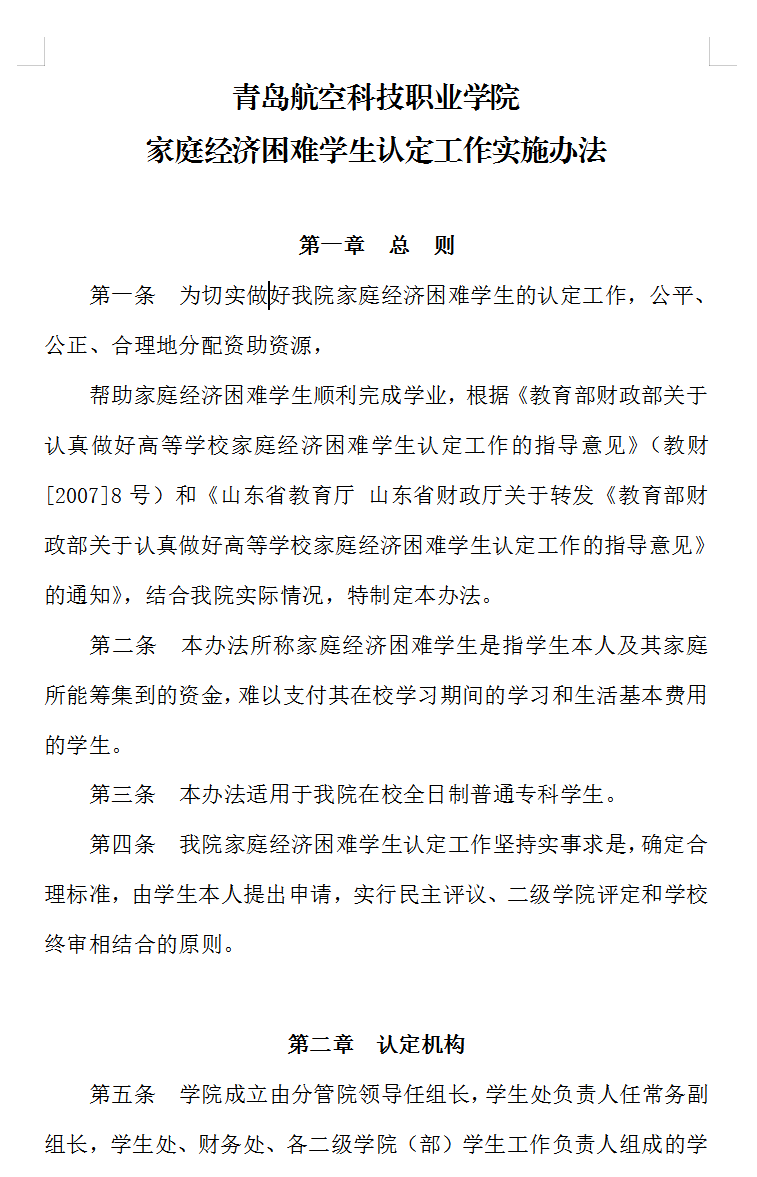 青岛航空科技职业学院 家庭经济困难学生认定工作实施办法