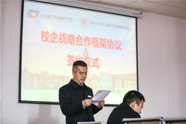 11月16日,青岛航空科技职业学院与青岛万丰钻石飞机复合材料制造有限公司校企战略合作框架协议签约授牌仪式在我校隆重举行,双方达成了校企合作共建共识,开启了企业和高校深度融合,双方互惠互赢、共谋发展的新篇章。