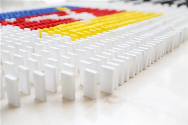 学生们用两万多块多米诺骨牌