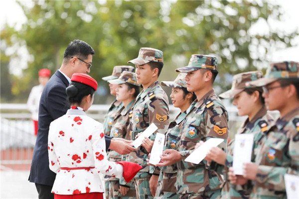 汇报最后,学院对优秀实习教官和优秀学生进行了表彰。青岛航空科技职业学院院长肖旭为优秀实习教官颁奖,副院长罗斌、曹青为优秀学生颁奖。