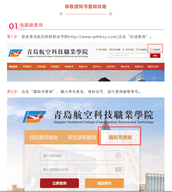 重磅来袭!青岛航空科技职业学院2021单独招生和综合评价录取通知书可以查询啦
