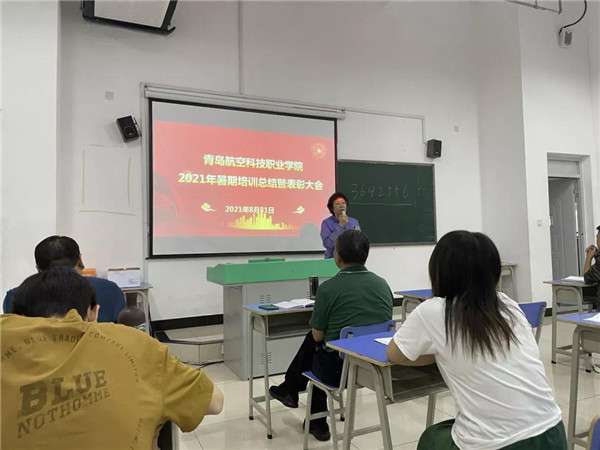 8月31日上午,青岛航院召开了2021年暑期培训总结暨表彰大会。泛美教育集团特聘专家曹慧贤,院长翟思成,副院长曹青、罗斌等领导出席会议,全体教职工参加了会议。