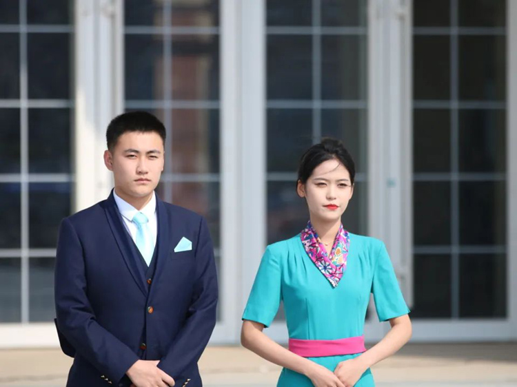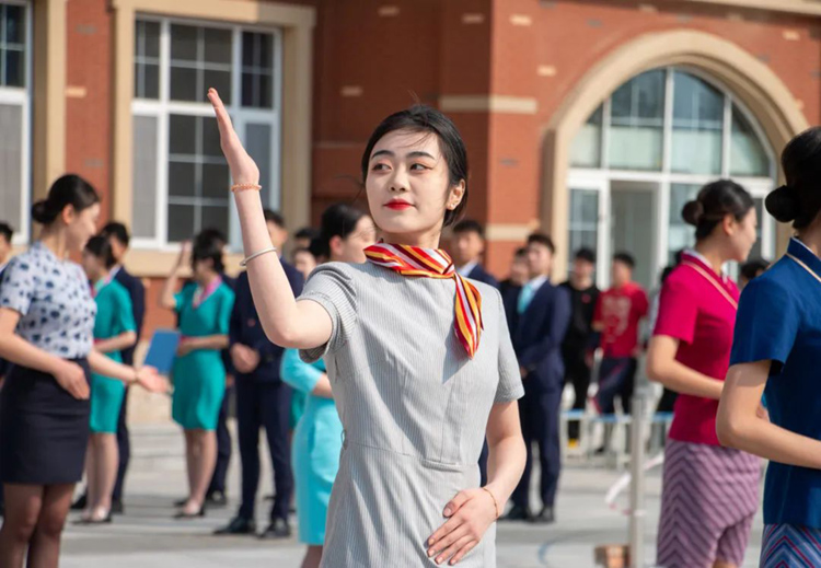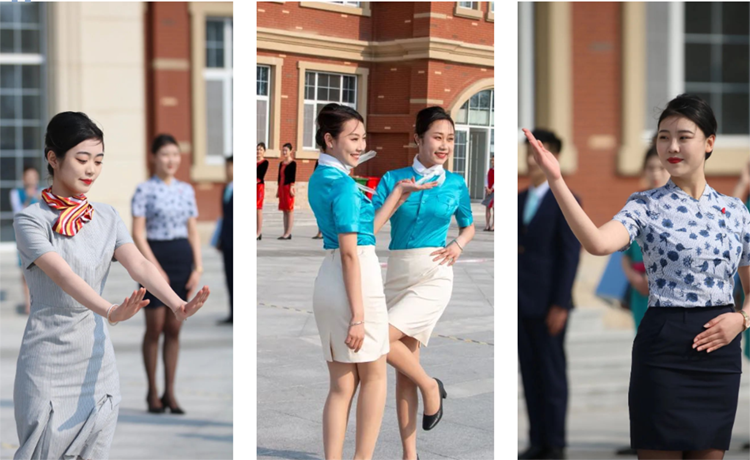 微笑礼、鞠躬礼、握手礼、名片礼......各个细节都体现了“用心”二字,落落大方的礼仪展示让人忍不住眼睛一亮,每一个礼节都彰显着青岛航校学子的专业修养。