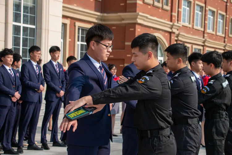 “您好,请出示有效证件,请接受安全检查……”民航安全技术管理专业的同学们演示了民航安检流程和动作,他们昂首挺胸昂,整齐划一,展现出了高度职业化民航员工的职业形象。