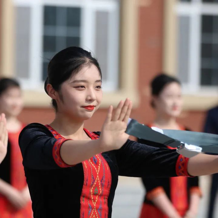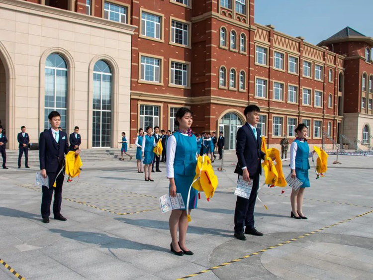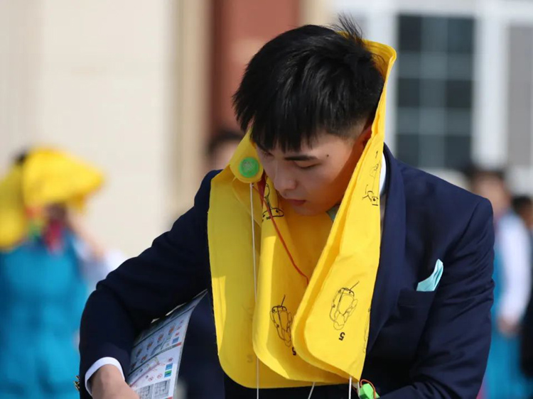 空中乘务专业的学生集体演绎专业技能,准乘务员向现场的师生们展现了客舱安全演示场景,春风吹乱了他们的演示器具,但是他们依旧镇定自若,熟练地演示每一个步骤,不放过每一个细节,娴熟的动作、良好的职业素养,成功的向我们塑造了一个真正民航员工的形象。