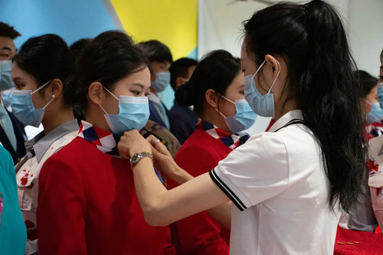 为深入学习贯彻落实习近平总书记在庆祝中国共产主义青年团100周年大会上的重要讲话精神,切实将先进青年吸收进团组织,保持团员队伍朝气蓬勃。6月8日,青岛航空科技职业学院举行“喜迎二十大 永远跟党走 奋进新征程”新发展团员入团仪式。青岛航空科技职业学院副院长曹青先生、团委负责人李璇老师、航服学院赵云国老师及35名新老团员代表参加活动。