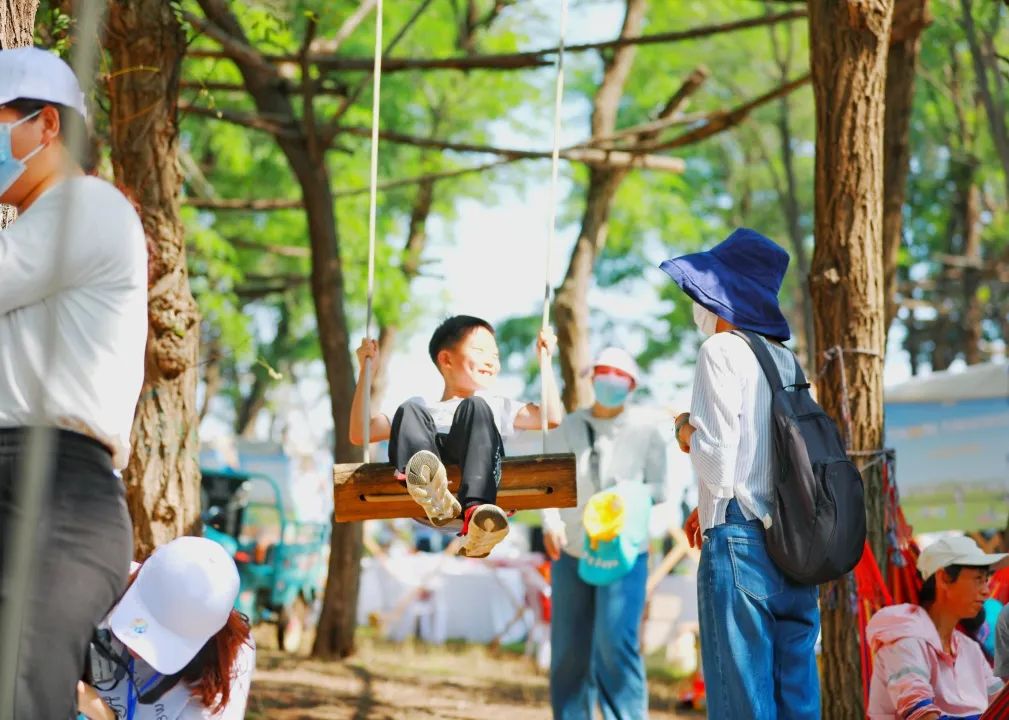 畅享“童趣”、尽情“童玩”。活动现场,鲜多多农场的童玩休闲体验区更是获得众多了萌娃的青睐,亲子帐篷、儿童吊床、户外秋千......专门打造的童玩休闲体验区为现场的游客带提供了丰富的亲子活动内容。