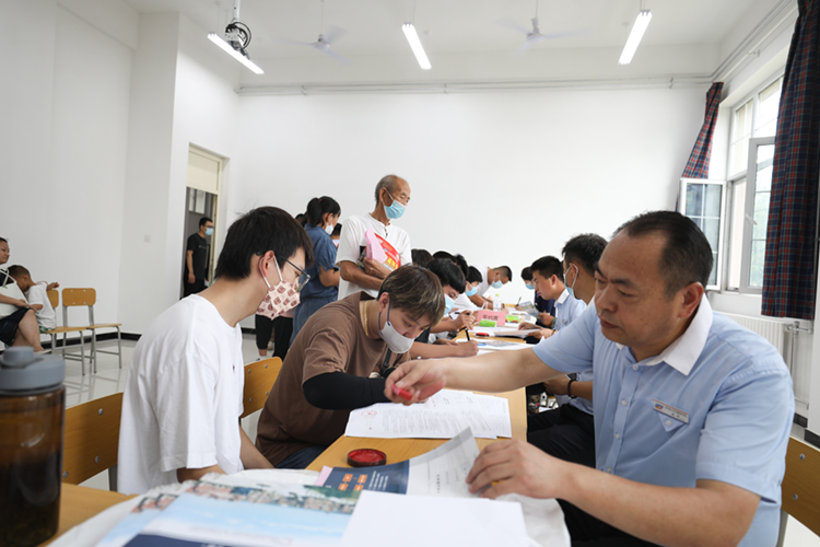 录取审核、办理报到卡、填写收费告知书并完成线上或线下缴费、签订教育合同、编班及参谋长处报到……每个环节皆有指示引导牌,现场信息确认过程中,各个环节的老师们耐心细致地为新生办理相关手续,提供热情、详细的服务。在各班级报到点,参谋长早早来到岗位,做好充分准备,以饱满的精神状态迎接新生的到来,做好信息审核工作、维护报到秩序。