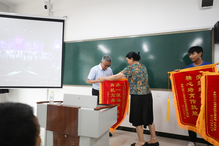 “家长朋友可以放心地把孩子交给青航”。在家长见面会上,青航院校收到了来自2019级来自青岛地区的学生刘俊及其妈妈的一份特殊的礼物---一面写有“办一流名校,真棒;育航空英才,真棒”的锦旗及两面感谢老师的锦旗。一面锦旗谢师恩,两行隽语诉真情。家长在交谈中动情地表示,看到孩子三年以来的成长与进步,内心无比感激,以锦旗来表达心声。刘俊表示到“自己能取得这样的成绩,在青岛航校三年以来的学习和生活尤为关键,正是学校的大力支持、倾心关注、如呵护‘幼苗’一样的浇灌栽培,老师们的辛勤付出、呕心沥血,才让自己取得了今天的喜人成绩。”