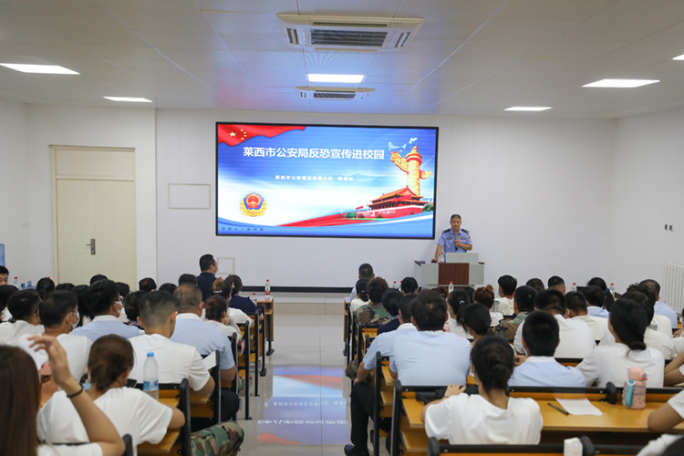 为切实做好新学期校园安全工作,增强全体教职工校园安全防范意识,更好地服务学生、迎接新学期的到来,8月24日上午,青岛航空科技职业学院邀请莱西市公安局反恐大队大队长蔺海峻到我校进行校园安全专题讲座,青岛航院全体教职工参加。