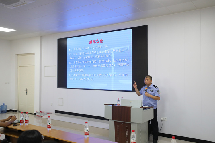 本次讲座中,蔺队长从交通安全、消防安全、网络安全、常见的违法犯罪行为等反面进行了详细介绍。“学校作为反恐的关键部分,要做好净校管理,加强校园安全”,在校园安全及交通安全内容方面,蔺队长结合真实校园案例向现场教职员工普及了校园安全的主要内容及重要意义,并以图文并茂的方式及亲身工作经历的讲述提醒教职员工要树立校园安全观念,强化安全意识,加强日常防范。