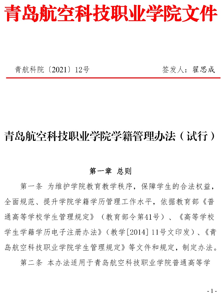 青岛航空科技职业学院学籍管理办法(试行).pdf