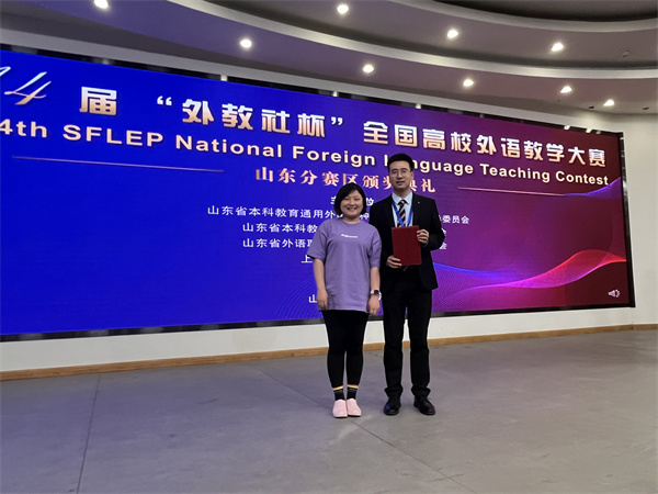 2023年5月20日、21日,在山东大学(威海校区)我校英语教学团队在第十四届“外教社杯”全国高校外语教学大赛山东分赛区决赛中大放异彩,荣膺省级“一等奖”。