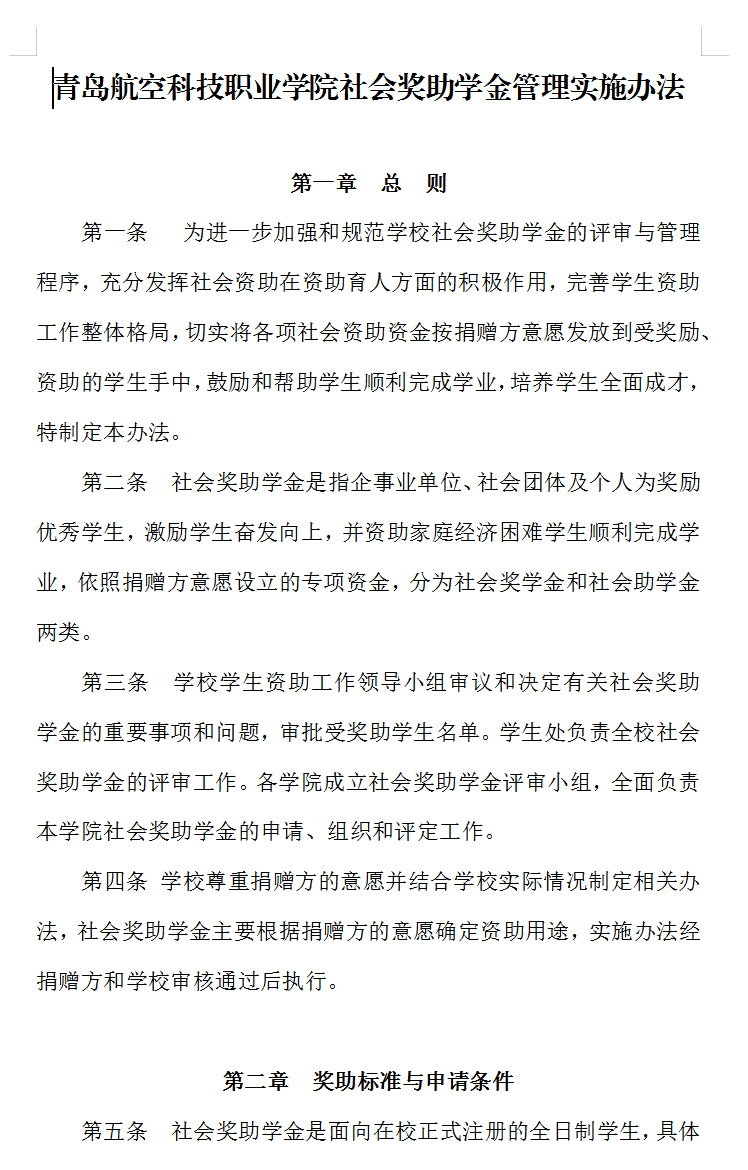 青岛航空科技职业学院社会奖助学金管理实施办法