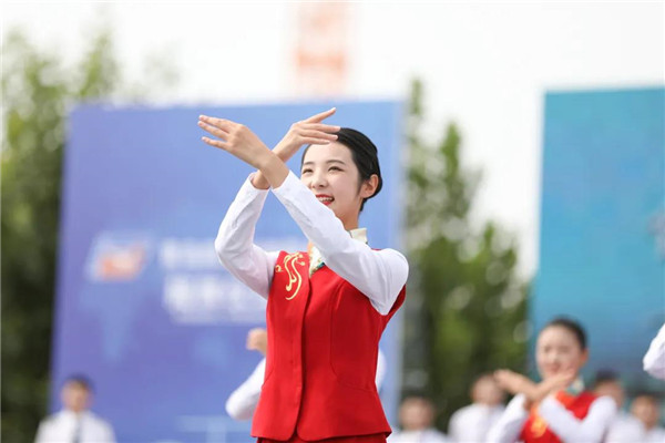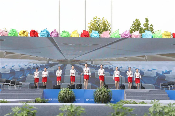在揭牌仪式现场,青岛北方航空职业学校的学子们带来精彩的航空专业特色节目表演,爵士舞《FLY嗨!》、校园学生服饰展示《多彩青航》、创意说唱《乐享·云端》、航空手语操《爱在蓝天》、飞行T台秀《壮志凌云》。现场其乐融融,赞叹声不绝于耳。