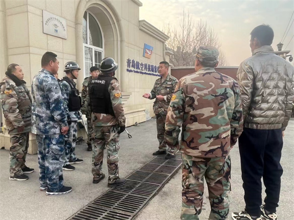 青岛航空科技职业学院2月西门岗反恐防暴演练