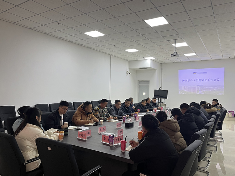 新学期伊始,为了更好的开展学生管理工作,3月1日上午,在综合楼420会议室召开了本学期学生管理工作会议。执行院长曹青,学生处副处长张鹏,军体部副处长刘克刚,各二级学院负责人、学工干事、军体干事参加了此次会议,本次会议由学生处副处长张鹏主持。