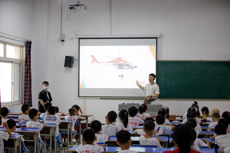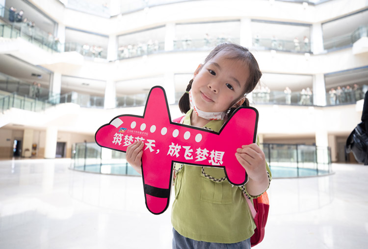 真的有城堡!”踏进校门的第一步,孩子们便不禁发出惊呼。经典梦幻的校园、如诗如画的美景让他们应接不暇。在生动、形象的航空趣味课堂中,专业课老师通过模型对飞机构架进行介绍,孩子们更是听得津津有味,不仅加深了对飞机构造的了解,而且航空梦的种子也在心底悄悄种下。