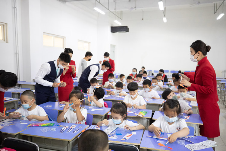 现在的孩子基本上很多都坐过飞机,可他们却不知道通过民航运输手段,将他们从青岛送到北京到底要经历多少个环节,需要哪些单位来保障。在青岛航空科技职业学院,沉浸式的职业角色体验、参与感极强的自制航模竞飞、真实的无人机炫技展演、近距离的波音737-300实体机观摩......一系列特色活动为孩子们打开新世界的大门。他们可以在体验式学习中学习航空安全与礼仪,在玩耍中对航空建立基本概念,能够在制作中进行航空探索,从而树立对民航行业真实又生动的认知。