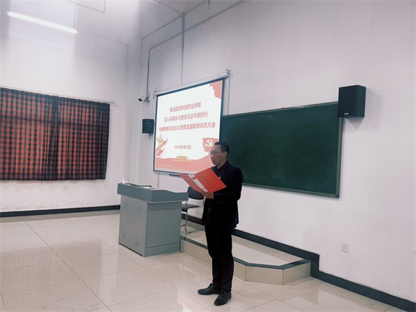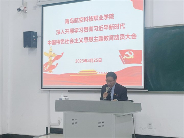 2023年4月25日,我校于综合楼B101教室召开学习贯彻习近平新时代中国特色社会主义思想主题教育动员大会。大会由党委委员曹青同志主持。