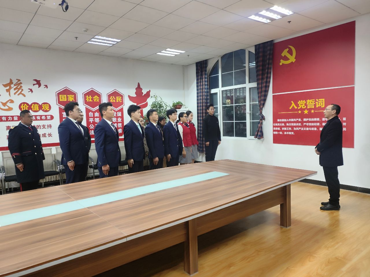 仪式初始,各支部新接收预备党员面对党旗,举起右手庄严宣誓,许下了对党忠诚的誓言,铿锵有力的誓言表达了对党的事业的热爱,充分展现了预备党员愿为党的事业奋斗终身的坚定决心。