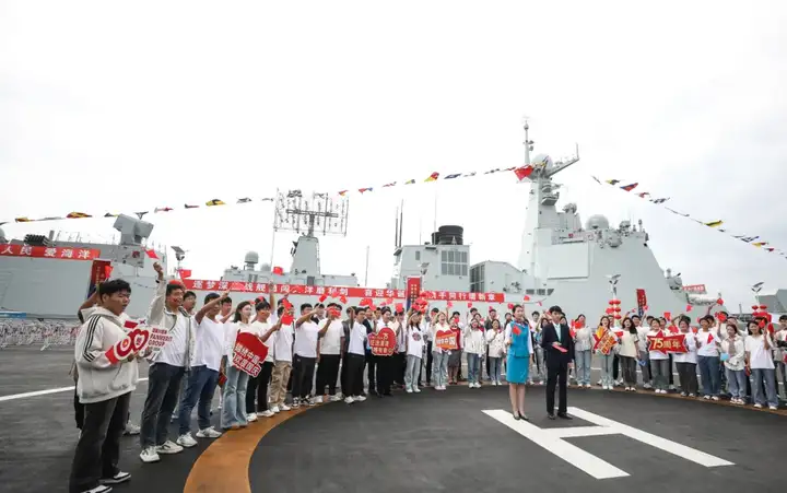 浮山湾畔,秋潮涌动,威武的战舰与青山碧海遥相呼应,描绘出一幅国泰民安的画卷。活动现场,青航学子们登上唐山舰进行参观,大家登上甲板、走进舱室,详细了解了舰艇的构造和性能,听取了官兵们分享的海上训练和执行任务的经历,对人民海军有了更加直观和深刻的认识。