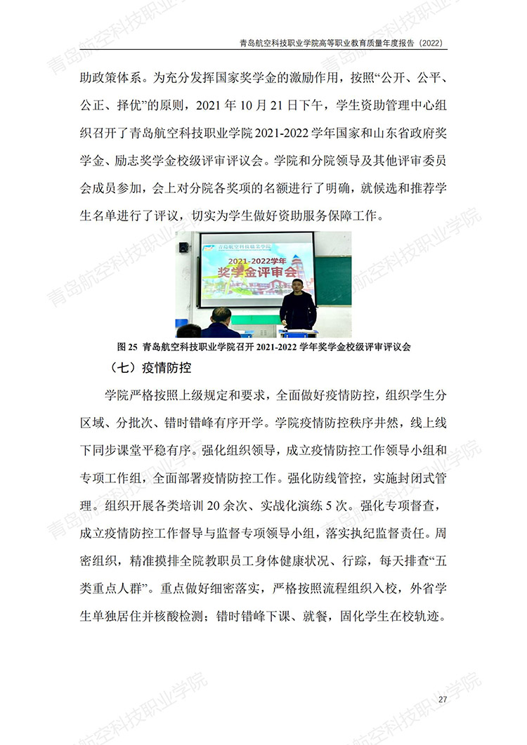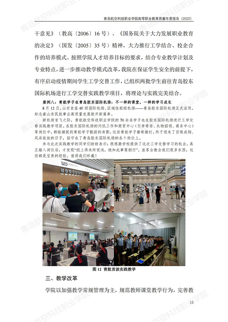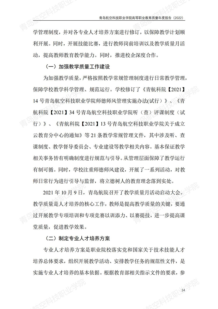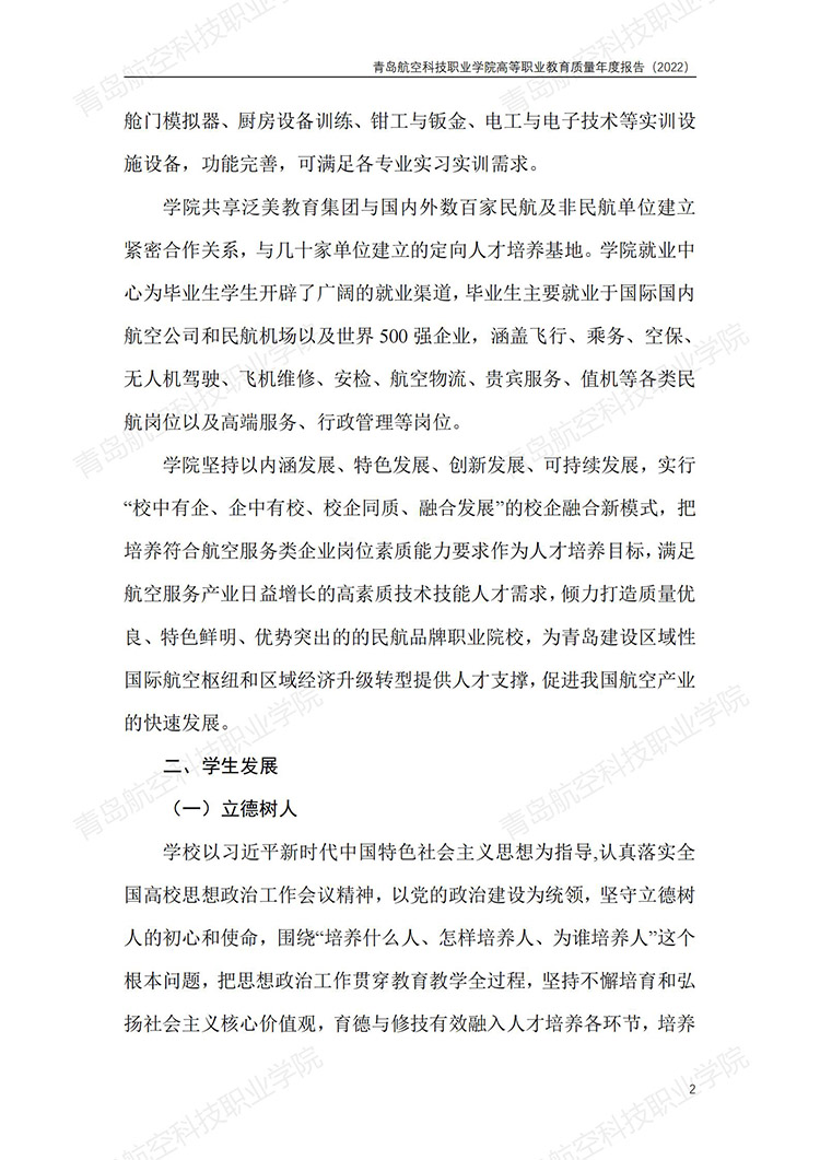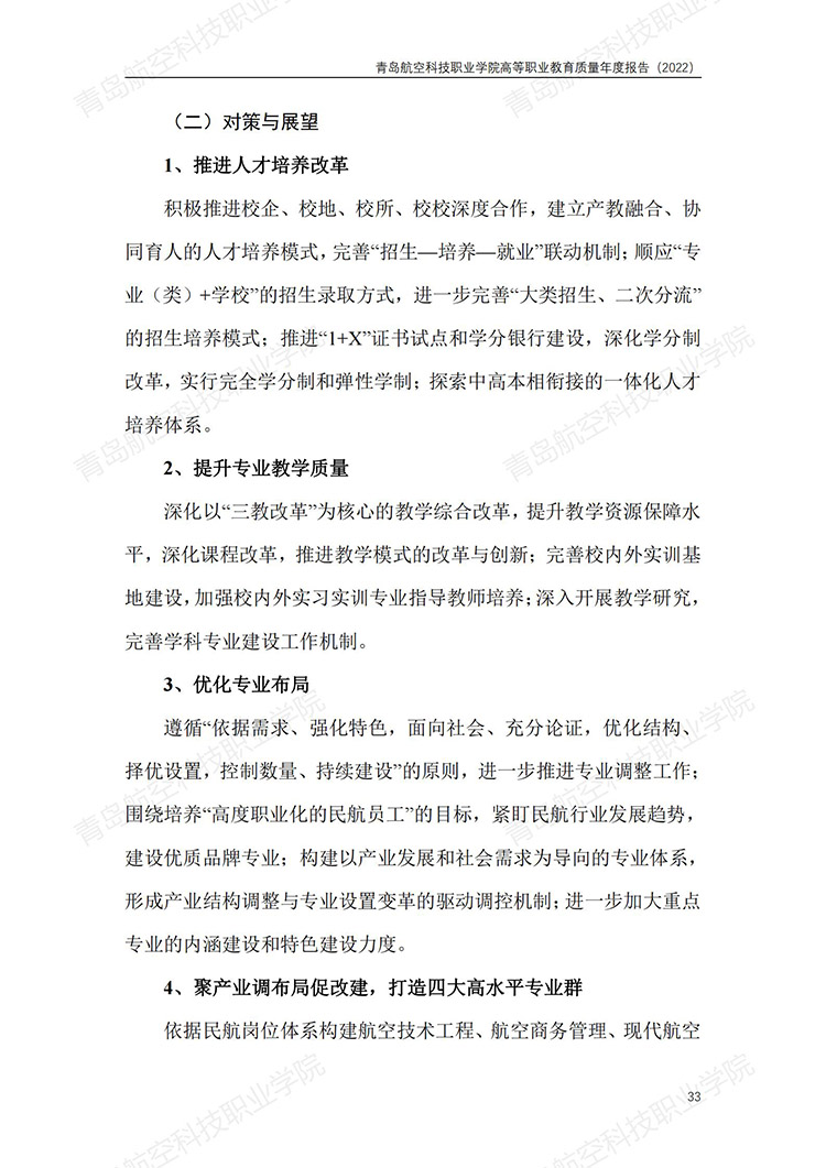 青岛航空科技职业学院高等职业教育质量年度报告 (2022 年)