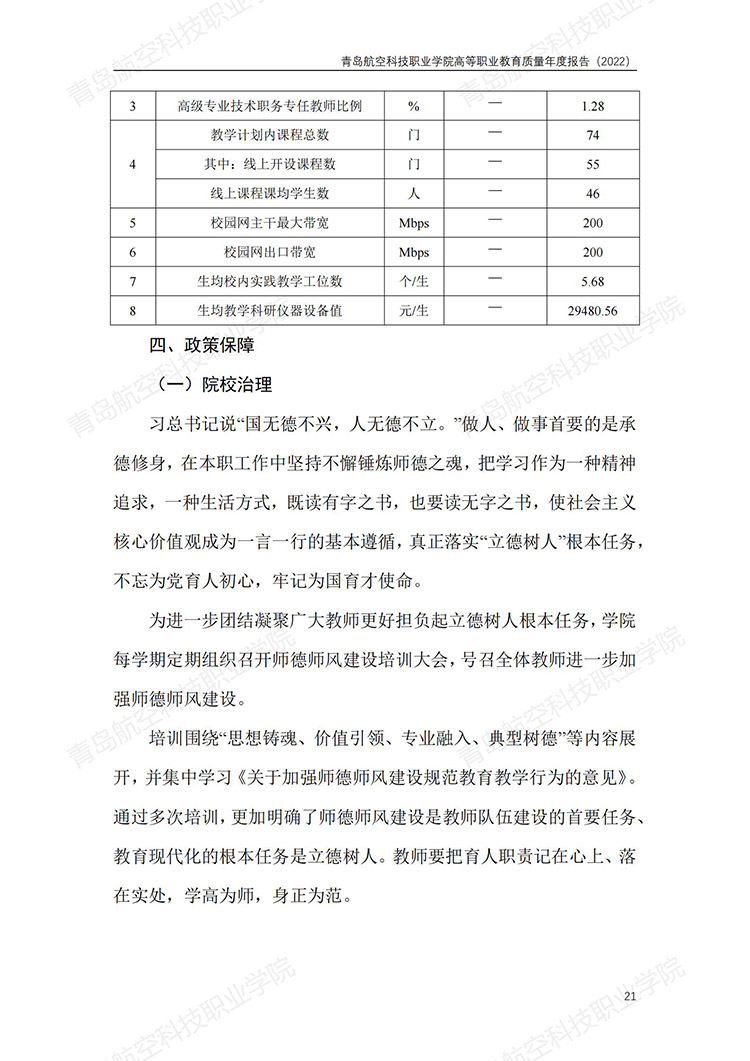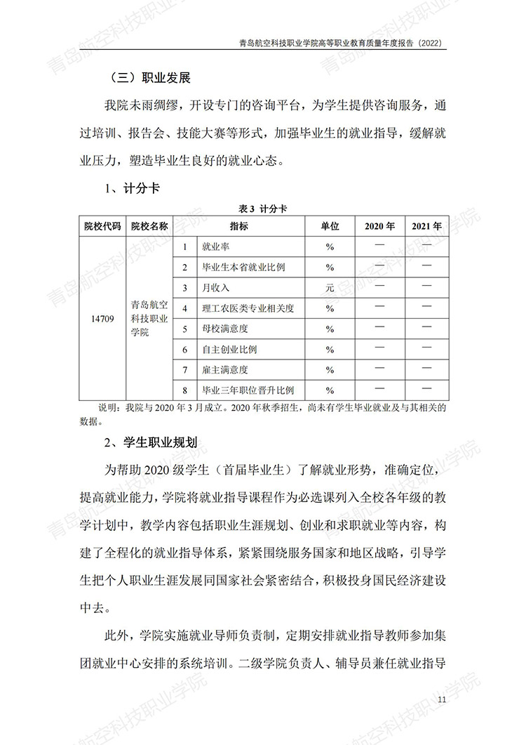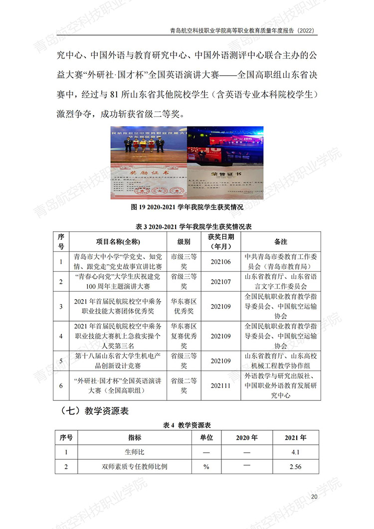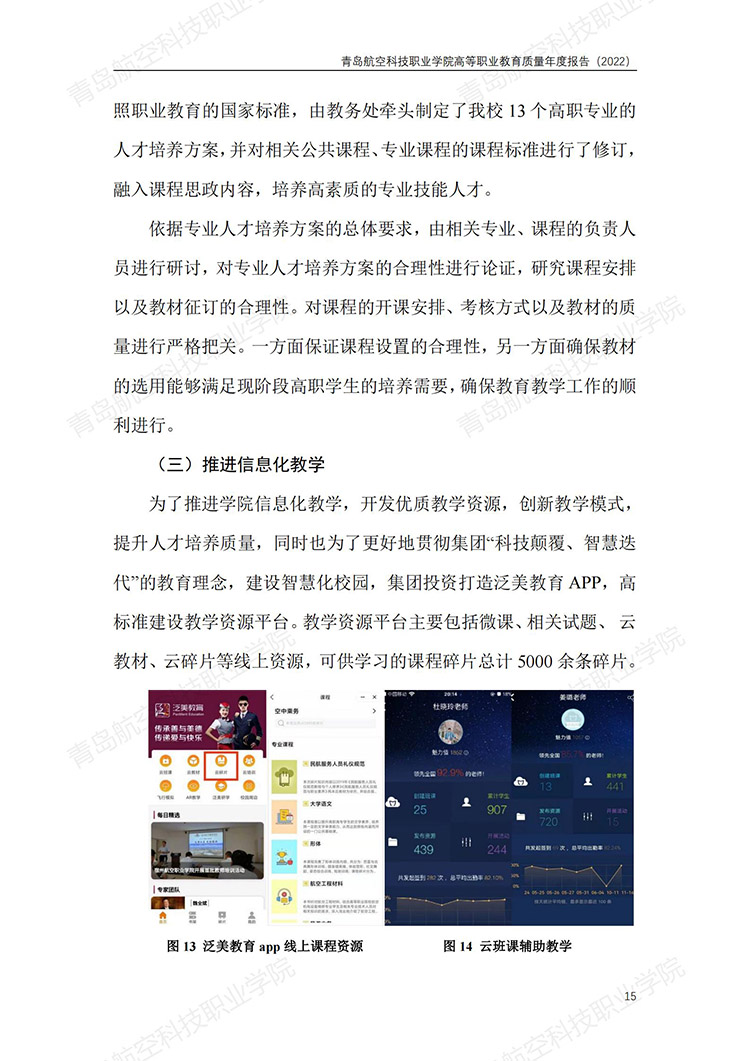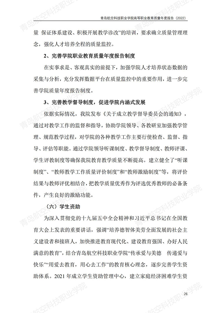青岛航空科技职业学院高等职业教育质量年度报告 (2022 年)