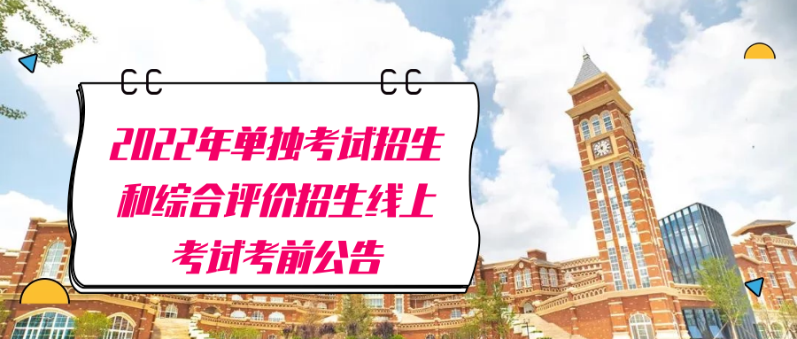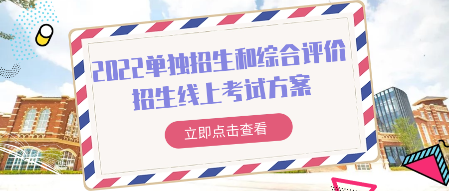 根据上级部门工作要求及新冠肺炎疫情防控形势,为减少人员流动,保障考生利益,本着公平、公正、公开的原则,经我院研究决定2022年单独考试招生(以下简称“单独招生”)和综合评价招生(以下简称“综合评价”)考试实行线上考试,具体方案如下: