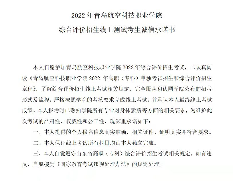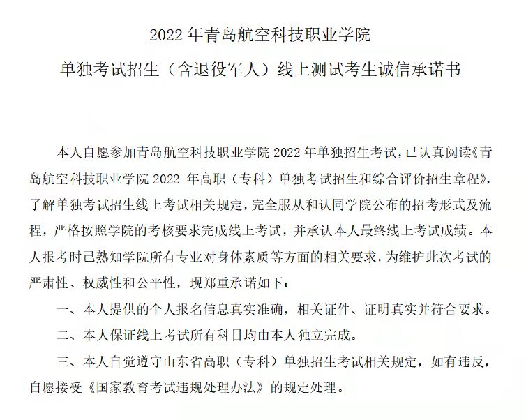 青岛航空科技职业学院2022年单独考试招生和综合评价招生线上考试方案