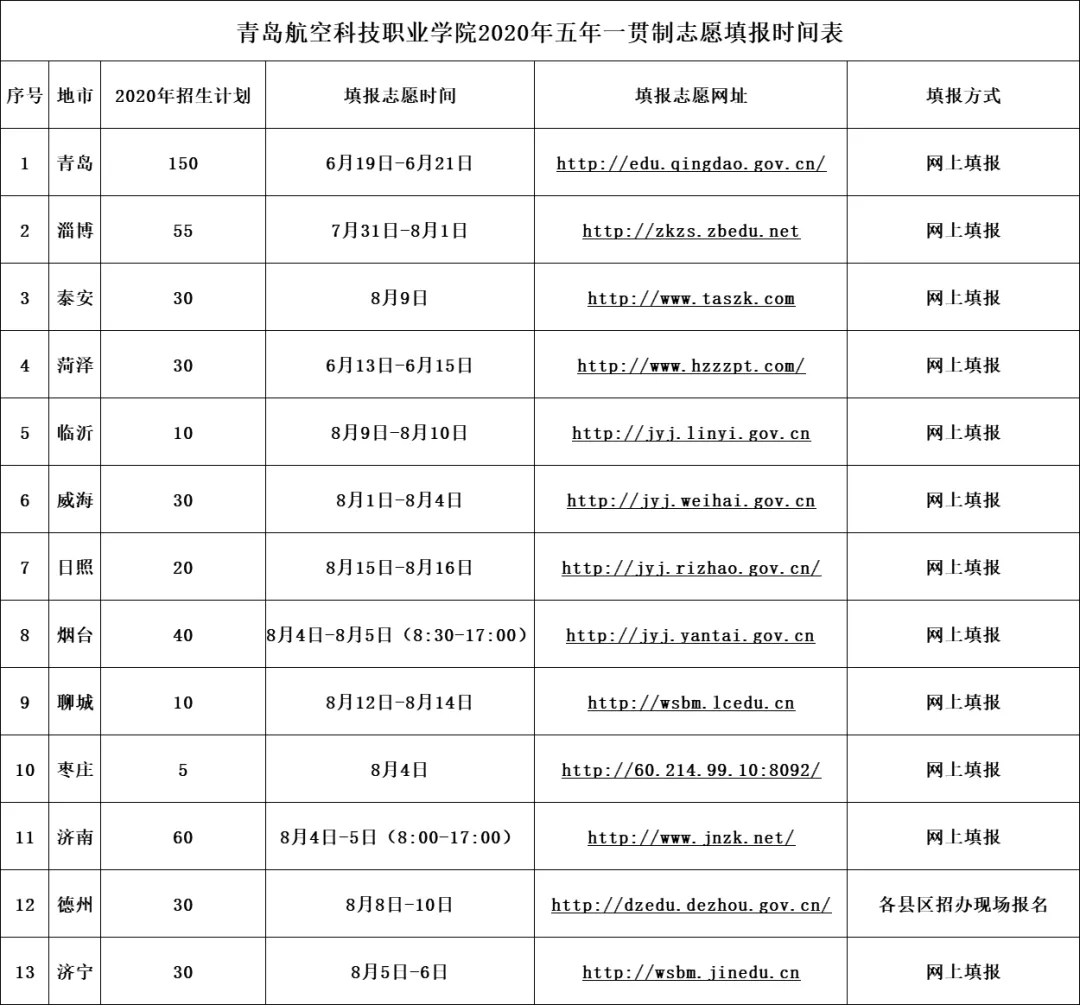 山东省各地市招考办陆续公布山东省2020年五年一贯制高职投档最低控制线和志愿填报时间安排表,在人生的赛道分叉口,实现蓝天梦想,选择青岛航空科技职业学院,成就最好的自己~~
